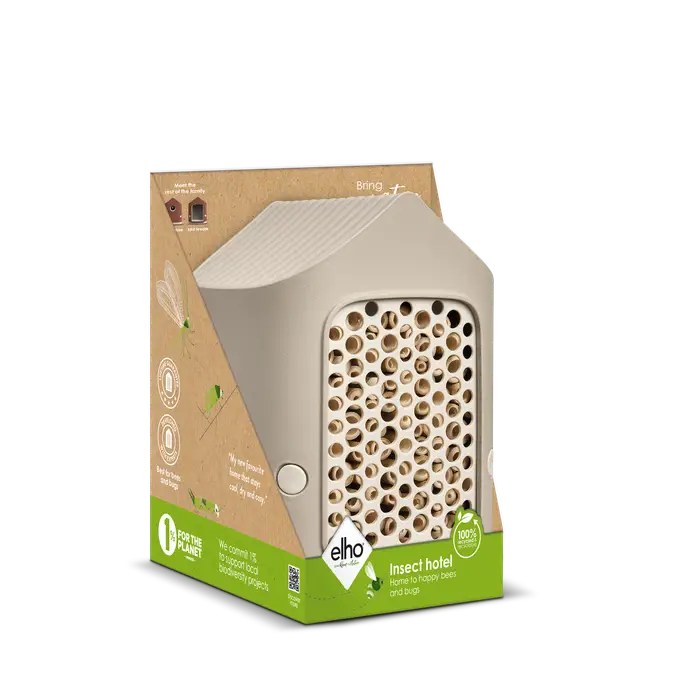 Elho, sustainability is at the heart of everything we do. The cosy insect hotel is made from 100% recycled plastic and produced with wind energy. So by choosing elho, you're not just helping the bugs in your garden – you're helping to create a greener world.